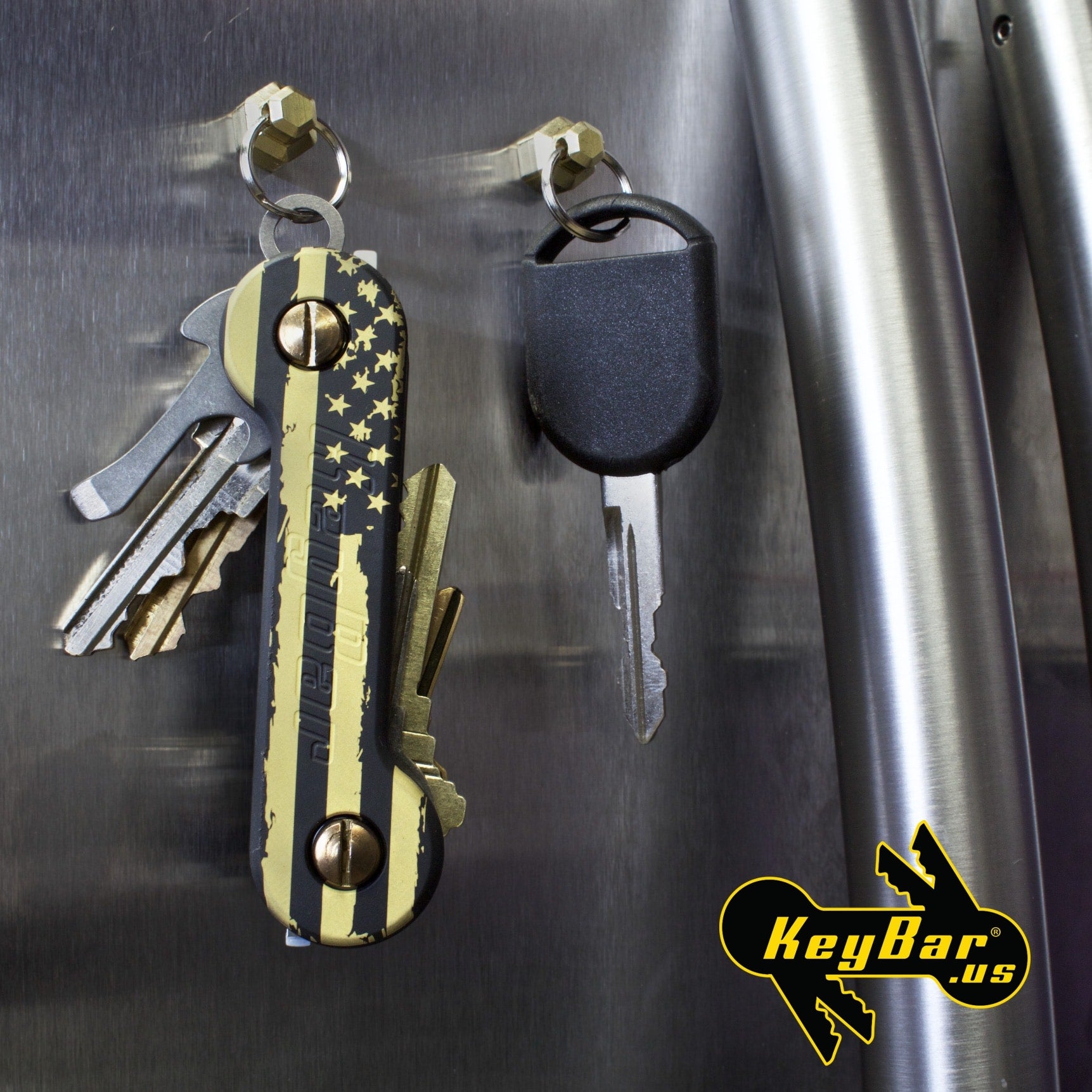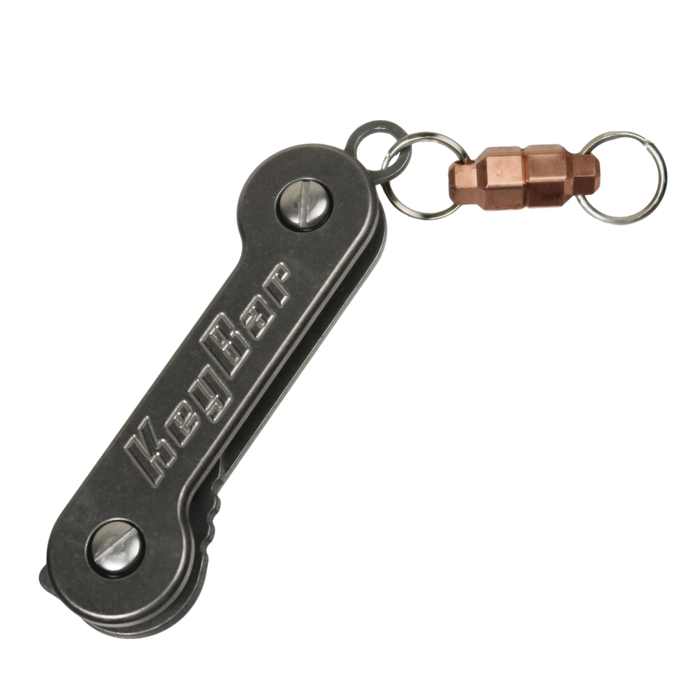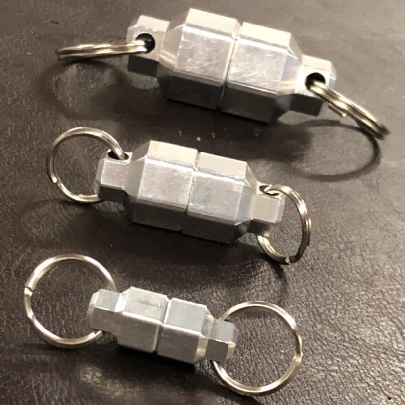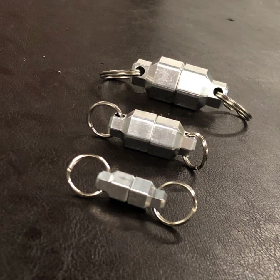 The Small and Medium MagNut set is a magnetic quick clasp specifically designed for the KeyBar but works on tools or other pesky items for which you need a quick mounting solution. A set includes two MagNuts (a right and a left MagNut) each with a 1/2″ diameter split ring. NOTE: Magnuts made of brass & copper – the material does create a patina on the surface of the product.