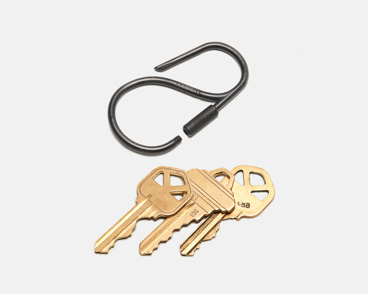 The Offset Keyring is the successor to the common carabiner, reimagined in cast brass, stainless steel and an optional nitrocarburized Carbon Black finish. The fluid construction of the Offset Keyring reflects the pursuit of simplicity: the synergy of keyring and hook, with no jump rings or secondary clips needed. The Offset Keyring is primed to hook onto a belt loop, bag strap, or live in your pocket effortlessly.